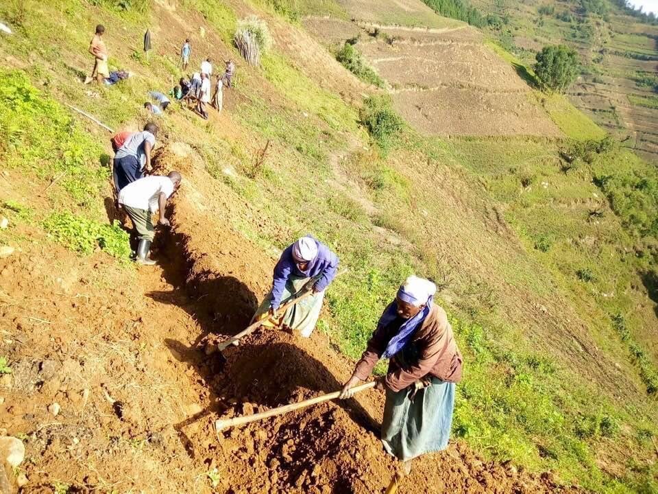 Local volunteers work hand-in-hand to dig life-saving trenches, diverting floodwaters and protecting homes.